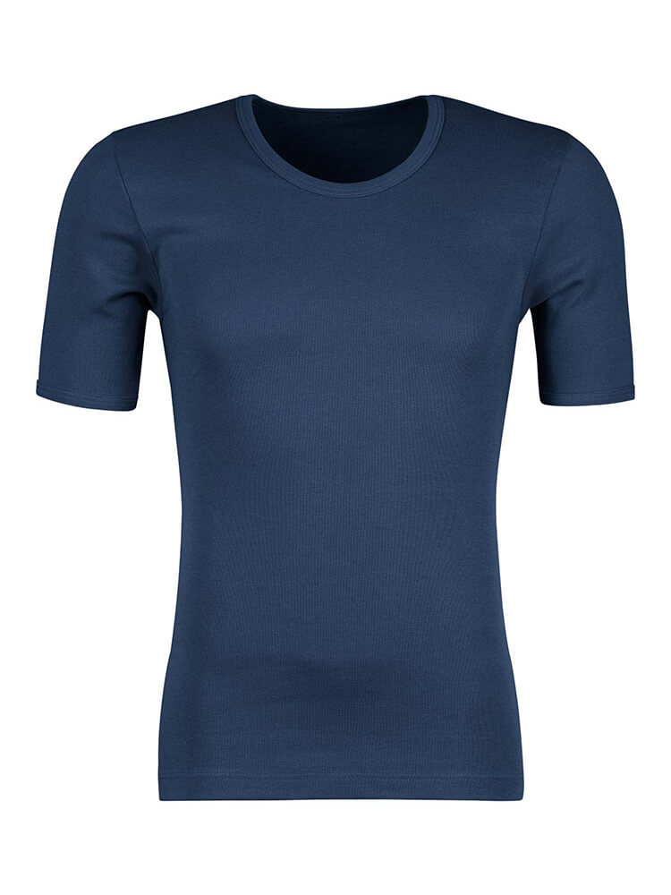 Das HUBER Cotton Fine Rib T-Shirt in Marineblau bietet ein besonders weiches und anschmiegsames Tragegefühl dank hochwertigem Feinripp aus 100% Baumwolle.