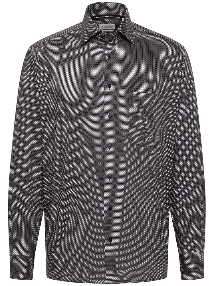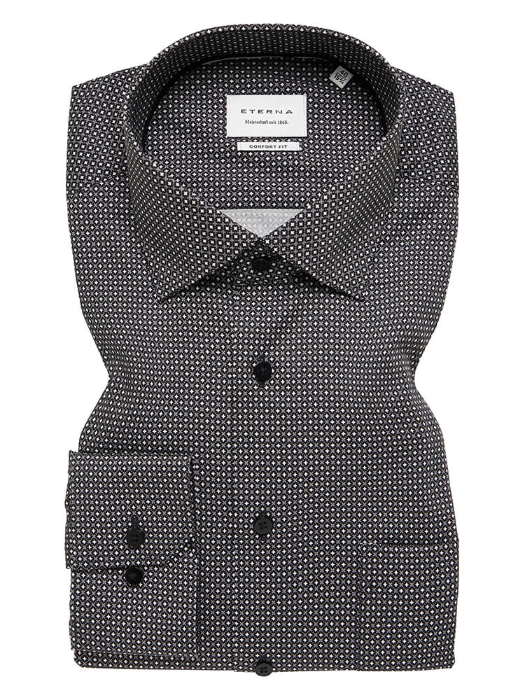Das komfortable Businesshemd aus der ETERNA Comfort Fit Kollektion steht für den kultivierten und modebewussten Mann von heute. Ein klassischer Schnitt verbunden mit modischen Produktdetails verspricht einen hohen Komfort und macht dieses Hemd zu einem Meister der Kombination. Das gemusterte Herrenhemd in der Farbe schwarz darf in keiner Herrengarderobe fehlen und kann mit dem eleganten und zeitlosen Kent Kragen zu jedem Anlass sowie im Alltag getragen werden. Mit einer passenden Krawatte und einem großen Krawattenknoten kommt dieses ETERNA Comfort Fit Herrenhemd am besten zur Geltung.