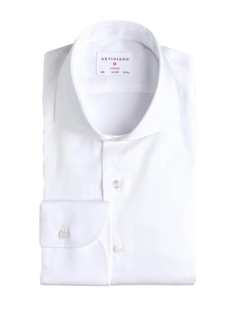 The elegant business shirt from the ARTIGIANO Slim Fit collection represents the slim, fashion-conscious man of today. A slim fit combined with fashionable details promise a high level of comfort and make this shirt a combination artist. The plain men's shirt in the colour white should not be missing from any man's wardrobe and can be worn with the elegant and classic Cutaway collar for any occasion as well as in everyday life. This ARTIGIANO Slim Fit men's shirt looks best with a narrow tie and a small tie knot.Manufacturer details: