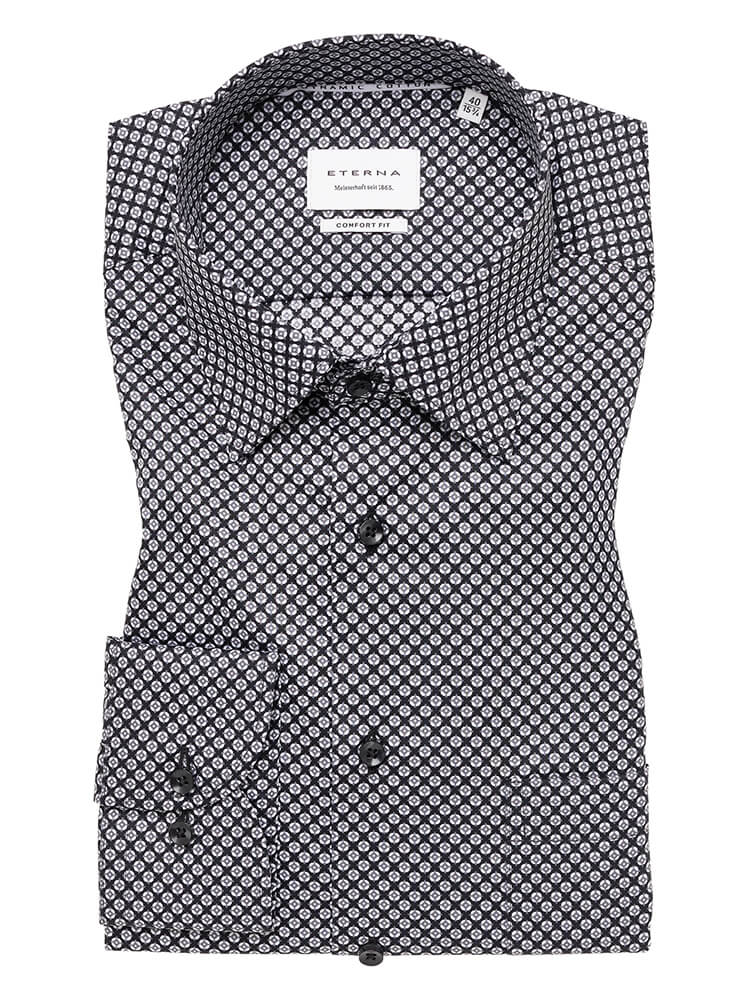 The comfortable business shirt from the ETERNA Comfort Fit collection represents the sophisticated and fashion-conscious man of today. A classic cut combined with fashionable product details promises a high level of comfort and makes this shirt a master of combination. The patterned men's shirt in the colour anthracite should not be missing from any man's wardrobe and can be worn with the elegant and timeless Kent collar for any occasion as well as in everyday life. This ETERNA Comfort Fit men's shirt looks best with a matching tie and a wide tie knot.Manufacturer details: