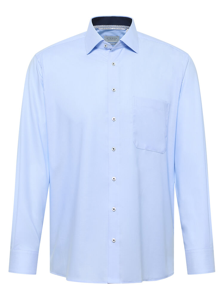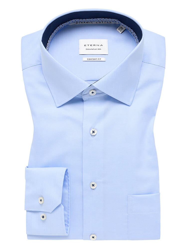 The comfortable business shirt from the ETERNA Comfort Fit collection represents the sophisticated and fashion-conscious man of today. A classic cut combined with fashionable product details promises a high level of comfort and makes this shirt a master of combination. The plain men's shirt in the colour light blue should not be missing from any man's wardrobe and can be worn with the elegant and timeless Kent collar for any occasion as well as in everyday life. This ETERNA Comfort Fit men's shirt looks best with a matching tie and a wide tie knot.