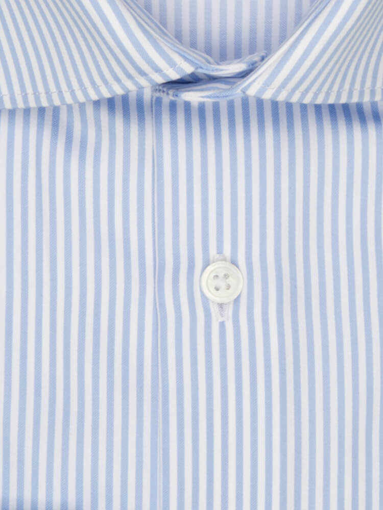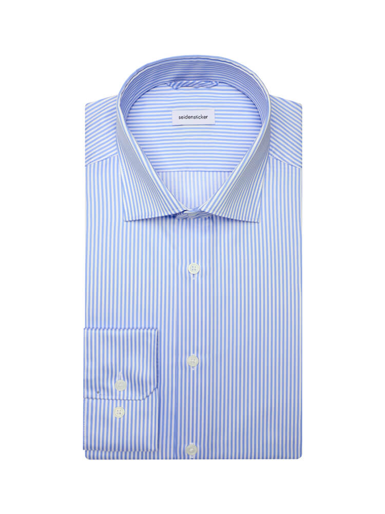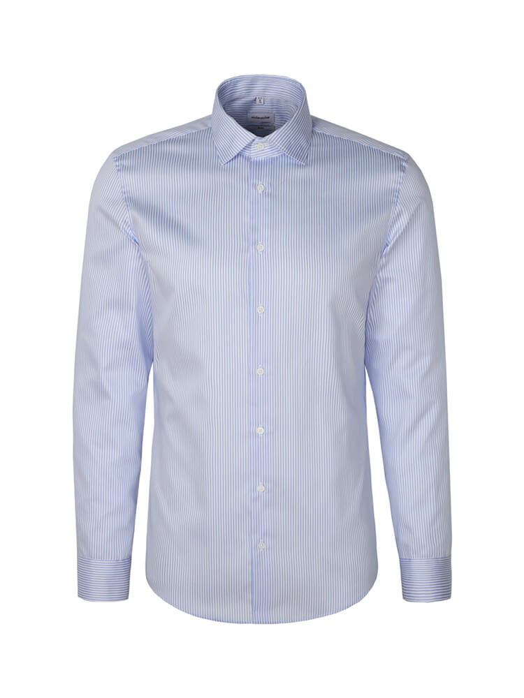 The elegant business shirt from the SEIDENSTICKER SLIM collection represents the slim, fashion-conscious man of today. A slim fit combined with fashionable details promise a high level of comfort and make this shirt a combination artist. The striped men's shirt in the colour light blue should not be missing from any man's wardrobe and can be worn with the elegant and classic Kent collar for any occasion as well as in everyday life. This SEIDENSTICKER SLIM men's shirt looks best with a narrow tie and a small tie knot.Manufacturer details: