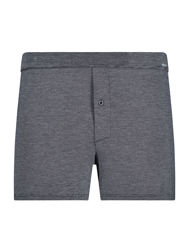 Los bóxers SKINY Cooling Deluxe en color negro, con un sutil diseño a rayas, ofrecen una agradable sensación de frescor y una comodidad excepcional. Su suave tejido de punto, compuesto por un 95 % de viscosa y un 5 % de elastano, garantiza una óptima libertad de movimiento y un ajuste cómodo. Con un tiro y un corte regulares, estos bóxers son muy cómodos. Cuentan con bragueta de botones, son fáciles de planchar, lavables a máquina y una prenda básica de uso diario que no requiere cuidados.