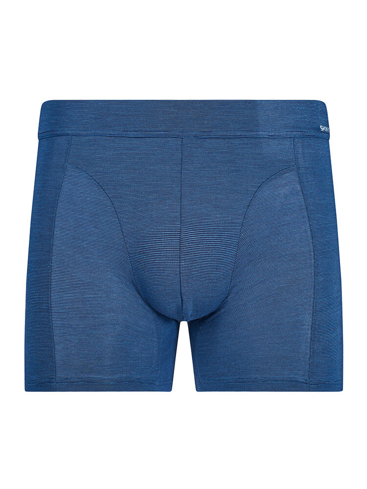 Los shorts SKINY Cooling Deluxe en azul marino, con un sutil diseño de rayas, ofrecen una comodidad excepcional y una agradable sensación de frescor. Su suave tejido de punto, compuesto por un 95 % de viscosa y un 5 % de elastano, garantiza una óptima libertad de movimiento y un ajuste cómodo. Con un tiro y un corte regulares, estos shorts son muy cómodos. Son fáciles de planchar, lavables a máquina y una prenda básica de uso diario que no requiere cuidados.