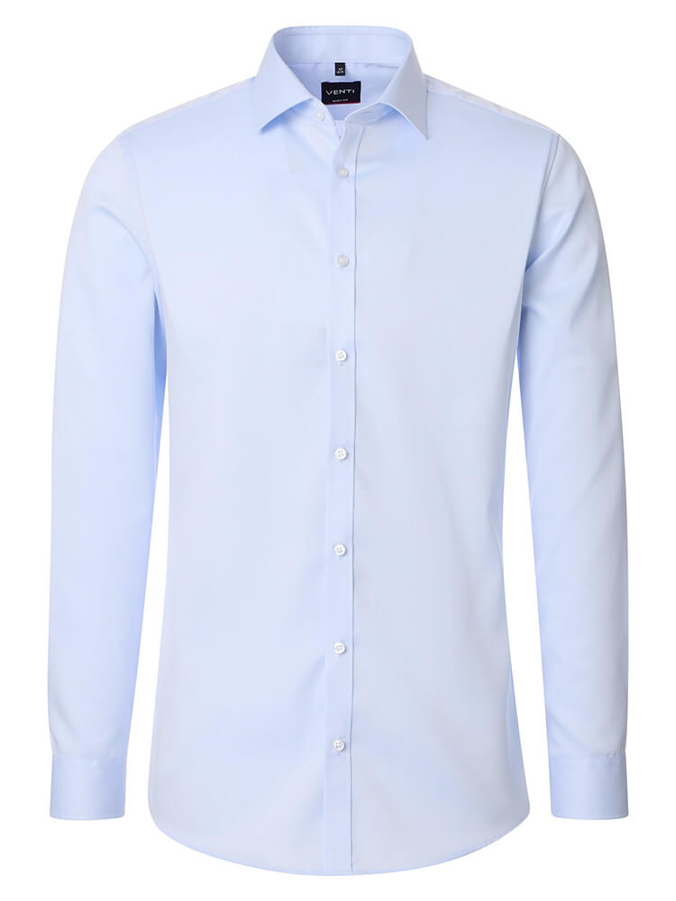 La camisa de negocios elegante de la colección VENTI Body Fit representa al hombre delgado y preocupado por la moda de hoy. Un corte delgado combinado con detalles de moda prometen un alto nivel de confort y hacen de esta camisa un artista de la combinación. La camisa lisa de hombre en el color azul claro para hombre no debería faltar en el armario de ningún hombre y puede llevarse con el cuello elegante y atemporal Kent para cualquier ocasión, así como en la vida cotidiana. Esta camisa de hombre VENTI Body Fit queda mejor con una corbata estrecha y un pequeño nudo de corbata.Información del fabricante: