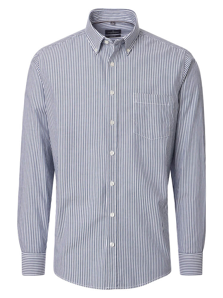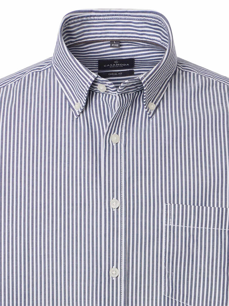 La camicia casual moderna della collezione CASAMODA Modern Fit rappresenta l'uomo sicuro di sé e alla moda di oggi. Un taglio contemporaneo combinato con dettagli di prodotto premium promette un alto livello di comfort, rendendo questa camicia un maestro di arrangiamento. La camicia a righe de uomo del colore blu scuro da uomo non dovrebbe mancare nel guardaroba di nessun uomo e può essere indossata con il collo distinto e classico Button-down per qualsiasi occasione e nella vita di tutti i giorni. Questa camicia da uomo CASAMODA Modern Fit si presenta al meglio con una cravatta abbinata e un nodo di cravatta largo.