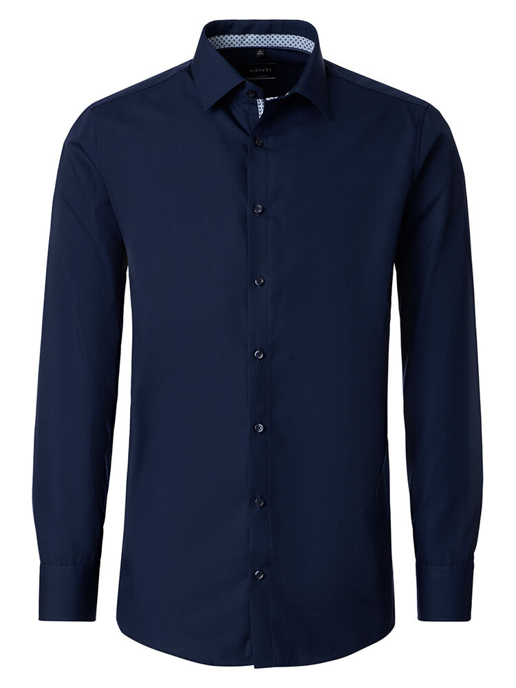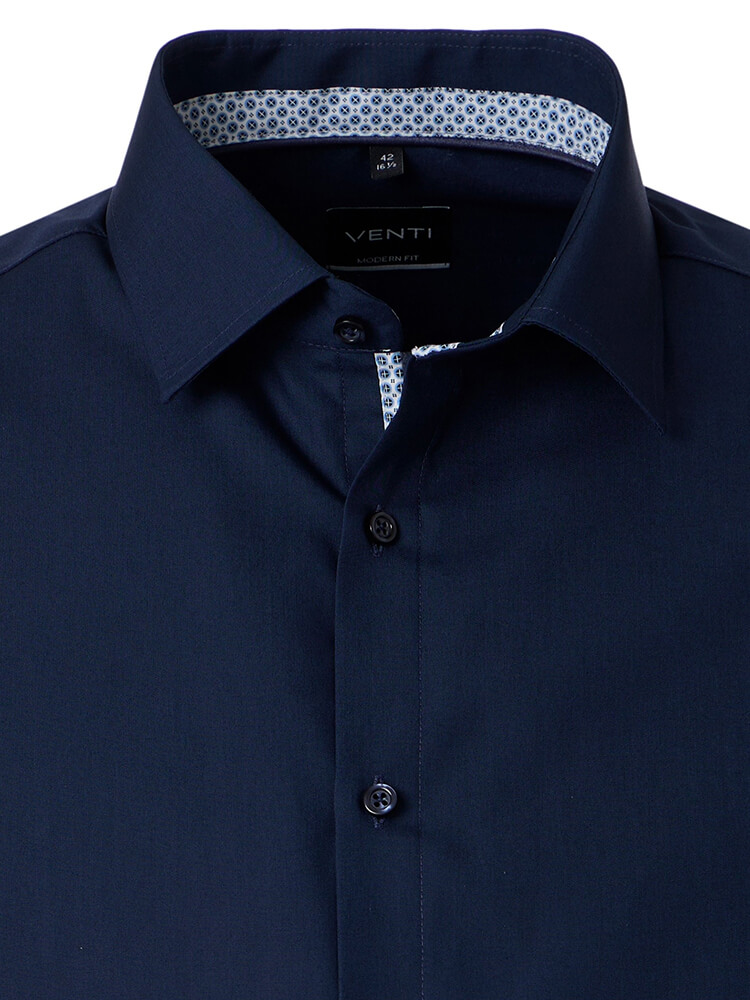 La camicia da ufficio moderna della collezione VENTI Modern Fit rappresenta l'uomo sicuro di sé e alla moda di oggi. Un taglio contemporaneo combinato con dettagli di prodotto premium promette un alto livello di comfort, rendendo questa camicia un maestro di arrangiamento. La camicia semplice de uomo del colore marina da uomo non dovrebbe mancare nel guardaroba di nessun uomo e può essere indossata con il collo distinto e classico Kent per qualsiasi occasione e nella vita di tutti i giorni. Questa camicia da uomo VENTI Modern Fit si presenta al meglio con una cravatta abbinata e un nodo di cravatta largo.