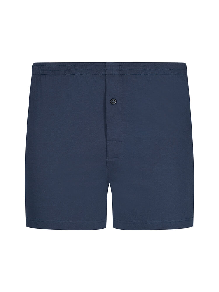 De HUBER Skin Close Jersey Boxer Selection boxershorts in donkerblauw bieden een relaxte pasvorm en uitzonderlijk comfort. Gemaakt van zachte jersey van 100% katoen, zijn ze bijzonder ademend en huidvriendelijk. Met een normale pasvorm en een praktische gulp met knoopjes zijn deze boxershorts ideaal voor ontspannen dagelijks comfort. Ze zijn machinewasbaar en gemakkelijk te strijken voor een moeiteloze verzorging.